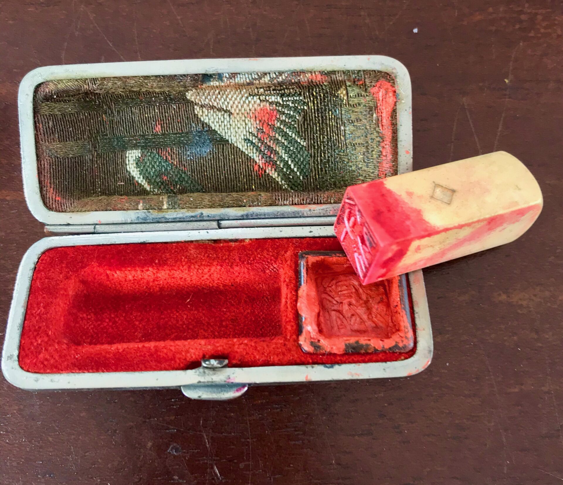 In Asia it is traditional for a person to use an official seal or stamp to chop an important business document rather than sign it. David found his grandfather’s chop from the 1920’s, carved from ivory He uses this chop to sign his art. When he chops a painting with his grandfather’s seal, he can really feel the close connection to his grandfather. The chop says Harry Lang in Japanese katakana characters